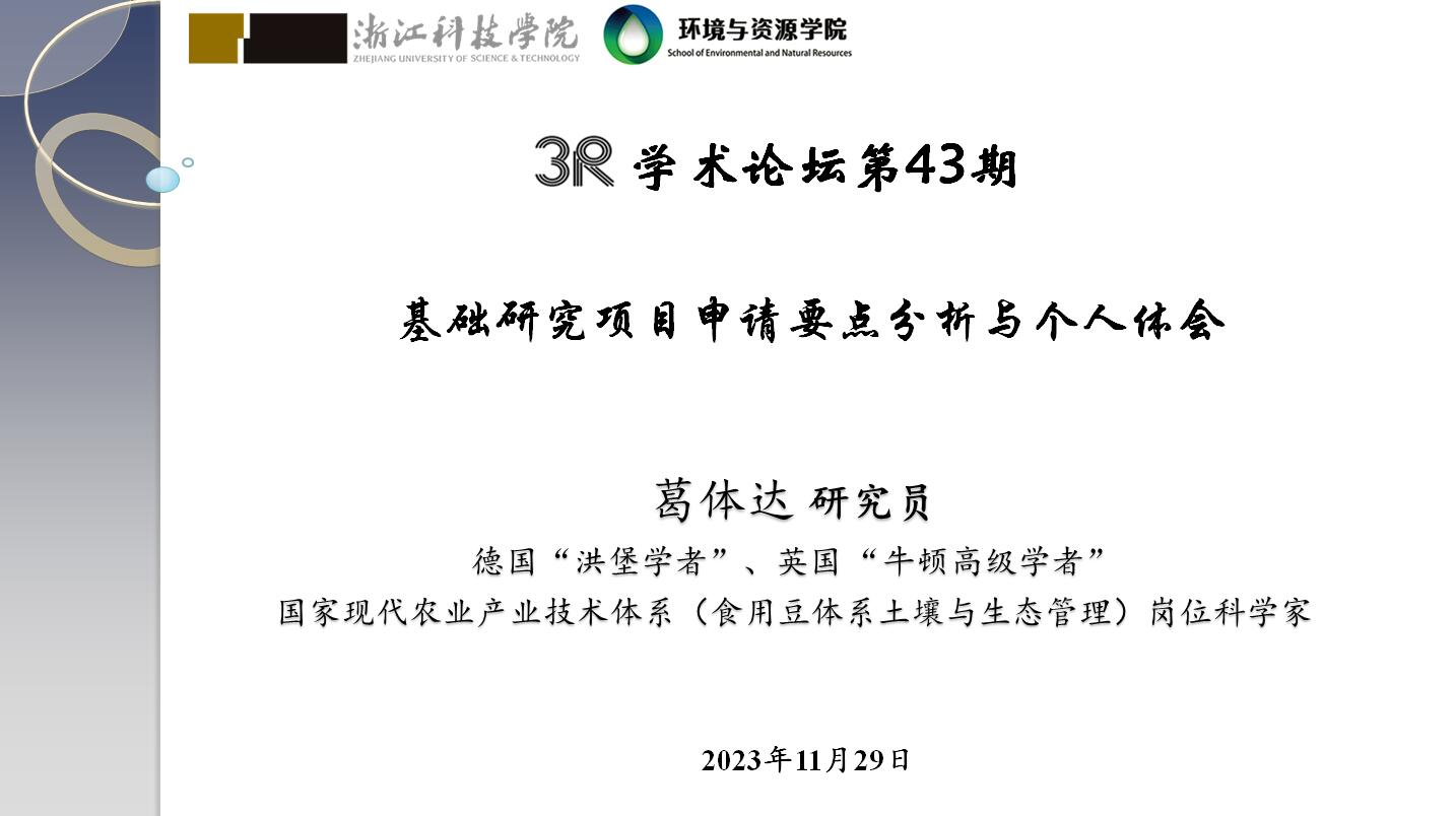 宁波大学植物病毒学研究所葛体达研究员来访98堂 并作“3R”论坛第43期学术报告 “基础研究项目申请要点分析与个人体会”