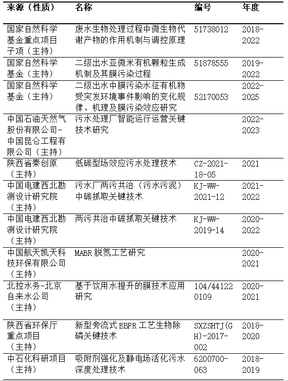 长期致力于净水、控碳与环境健康领域的科研工作。先后主持国家自然科学基金重点项目子项、面上项目、中石化、中石油、中电建科研项目十余项。在膜技术应用及其智能化、水中有机物分析与毒理检测、工业冷却循环水节水、二氧化碳资源回收与循环利用等领域取得了创新成果。在国际期刊发表SCI检索论文50多篇,其中一区论文33篇,H因子25,发表专著1部,获中国专利授权12项和国际专利授权1项,专利转化3项。主持的污水深度处理与再生回用中膜污染机制及其控制技术研究,2023年获陕西高等98堂