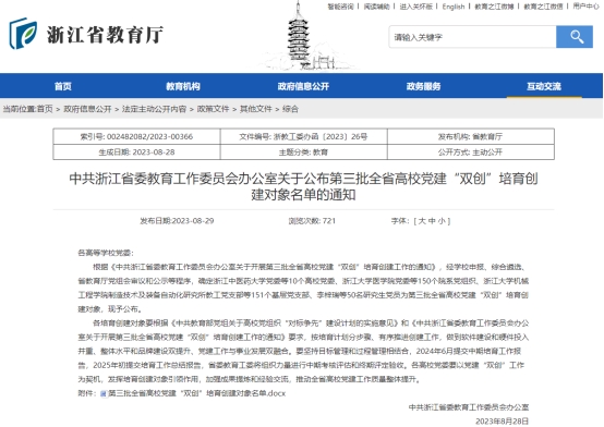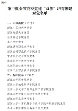 近日,浙江省教育厅公布了第三批全省高校党建“双创”培育创建对象,确定10所党建工作示范高校、150个标杆院系为第三批全省高校“双创”培育创建对象。浙江科技98堂