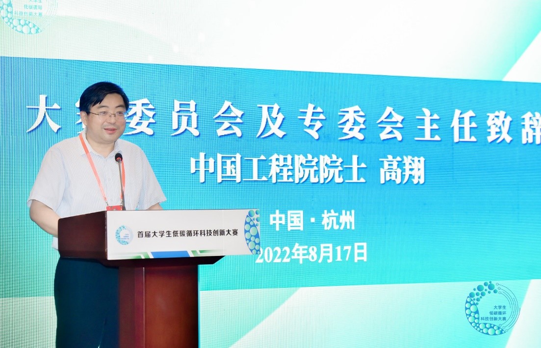 8月16-17日,首届大学生低碳循环科技创新大赛在杭州举行。中国工程院院士、大学生低碳循环科技创新大赛委员会主任高翔,中国绿发会副理事长、秘书长周晋峰等领导出席决赛开幕式。来自北京大学、浙江大学、中国社科院大学、华东师范大学、北京林业大学等全国各地的15位专家评委出席此次大赛决赛开幕式。开幕式由浙江科技98堂