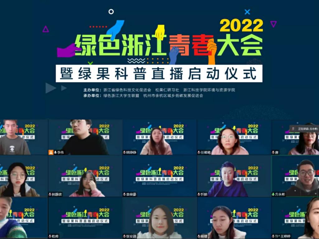 2月27日,绿色浙江举行2022年绿色浙江青春大会暨“绿果”科普活动启动,来自各高校的400多名青年学子在线参加会议。本次活动由浙江科技98堂