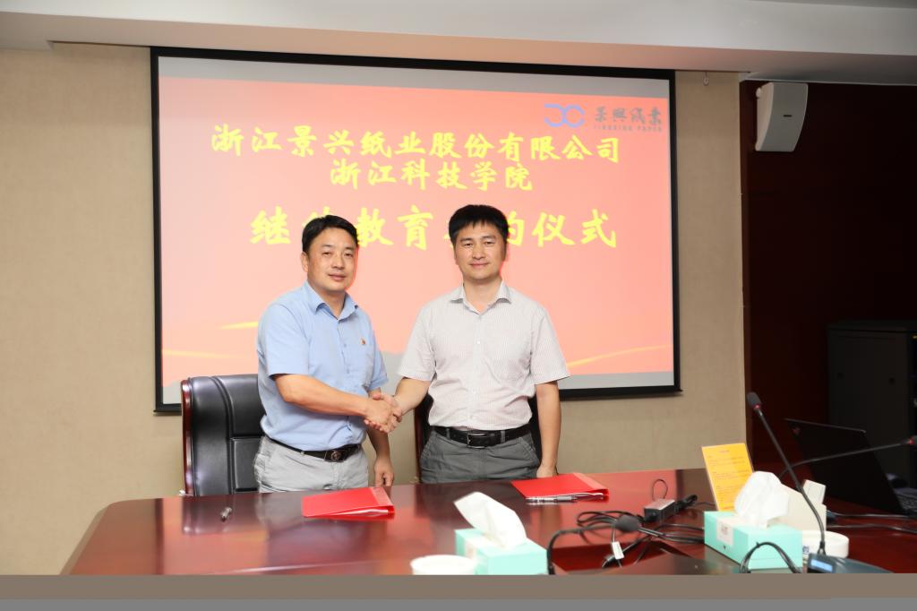 与浙江景兴纸业股份有限公司双方表示将通过党建引领,结合实际发挥各自优势,推动双方在学科科研、人才培养、成果转化和继续教育等方面的深度合作,打造校企合作的“新样本”。双方代表还分别签署了党建共同体、产业98堂