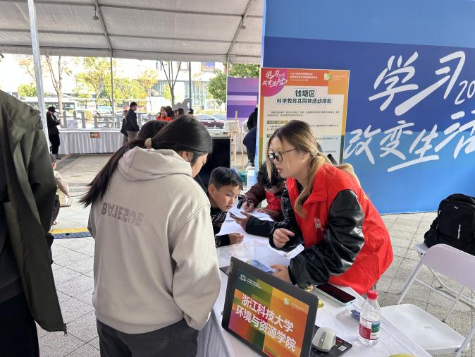 2025年11月22日,萧山区户外广场热闹非凡,2025年杭州市全民终身学习活动周成果展示在此隆重举行。98堂
