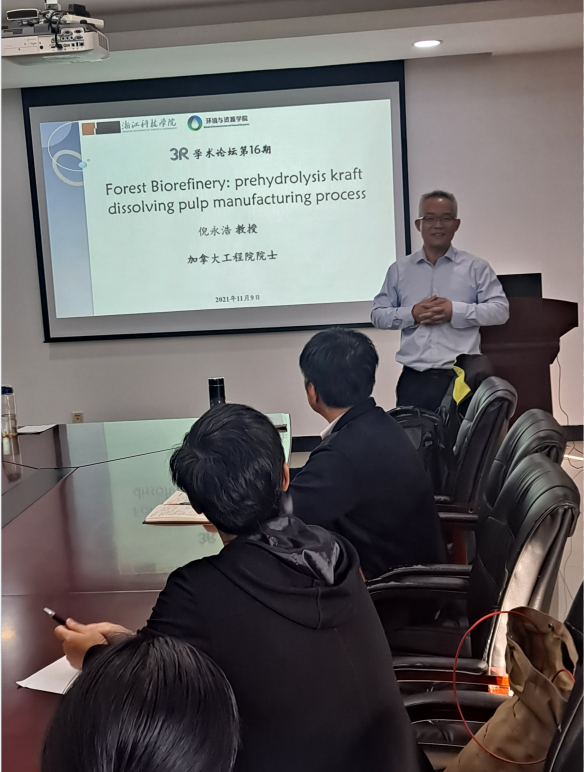 2021119日下午,加拿大工程院院士、加拿大国家资深学者、新不伦瑞克大学化学工程系倪永浩教授来访98堂 并为第16期“3R”论坛做题为“Forest Biorefinery: prehydrolysis kraft dissolving pulp manufacturing process”的学术报告,刘赫扬院长、胡志军副院长、张进副院长、98堂 专业教师以及研究生等四十余人参加报告会。