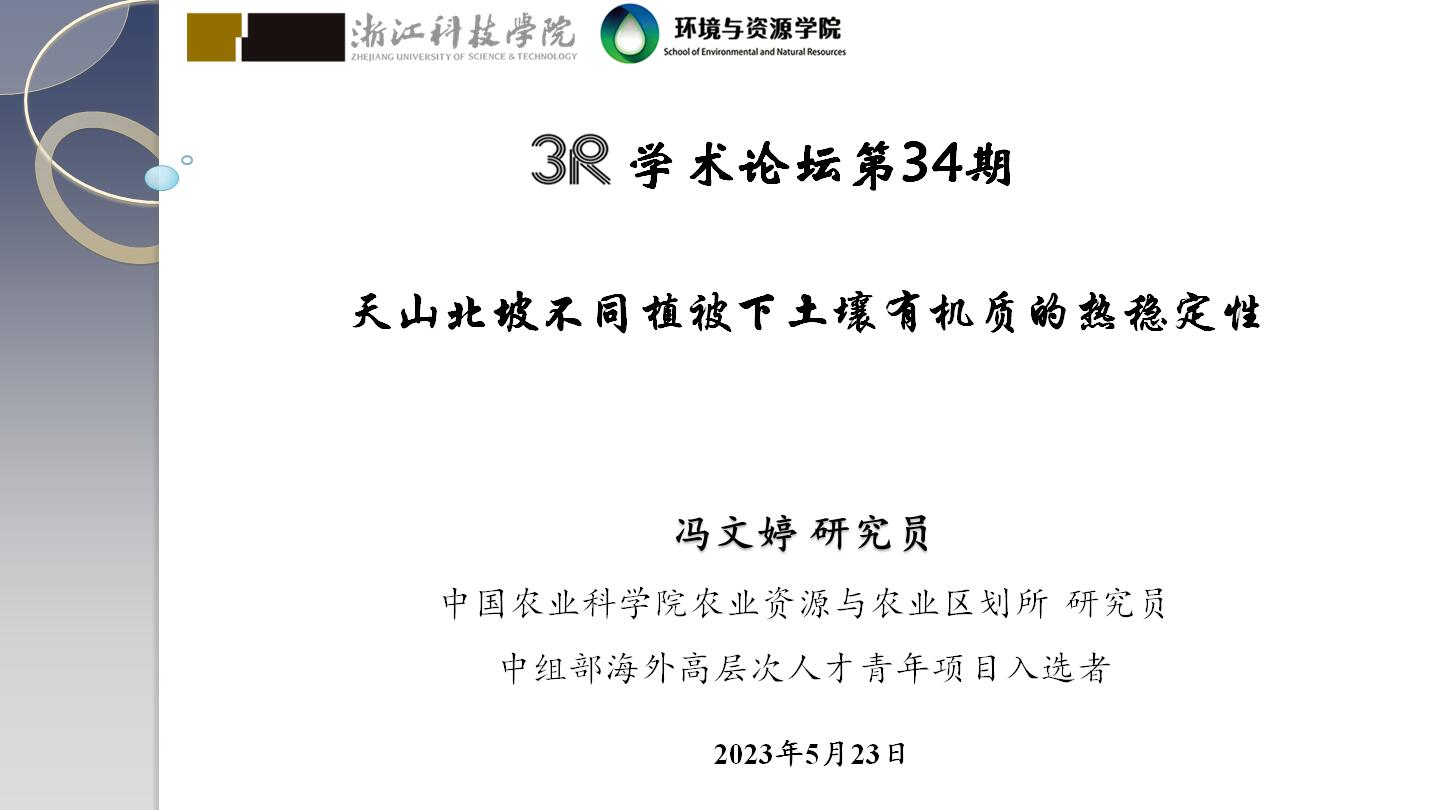 作题为“天山北坡不同植被下土壤有机质的热稳定性”的学术报告,报告由98堂