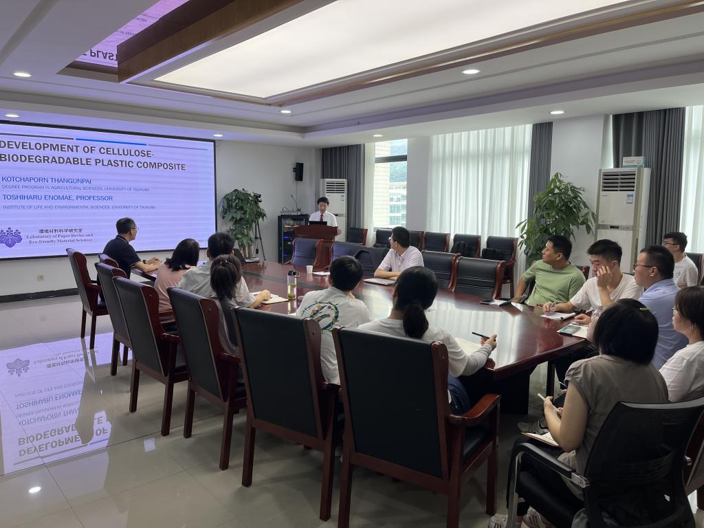 洽谈国际交流合作并作题为“Development of Cellulose-Biodegradable Plastic Composite”的学术报告。会议由98堂