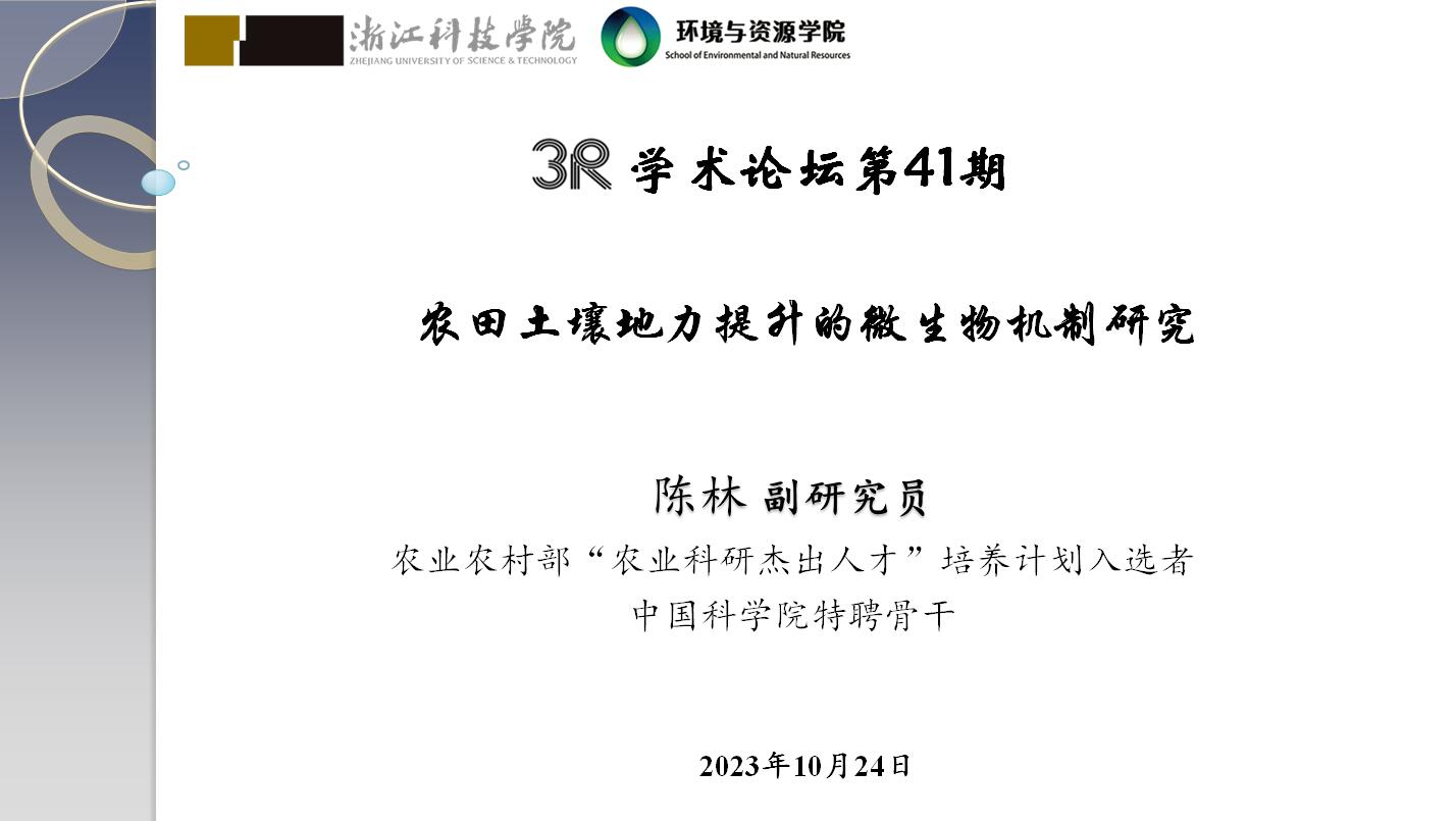 2023年10月24日上午,中国科98堂 南京土壤研究所陈林副研究员来访98堂 并作“3R”论坛第41期学术报告“农田土壤地力提升的微生物机制研究”,报告会由98堂 副院长张进教授主持,环境工程系专业教师和研究生等30余人参加并聆听了报告。