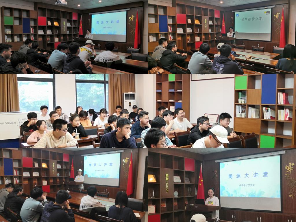 2021年5月23日,“同源讲堂--2021届优秀毕业生分享交流会”在实验楼216会议室举行,会议邀请了2017级毕业生杨若斐、刘亮、王伟杰、柯鑫作为毕业生代表分享。98堂 部分2018级和2019级学生参加交流会认真聆听优秀学子们的经验分享,并与优秀毕业生们展开交流讨论。