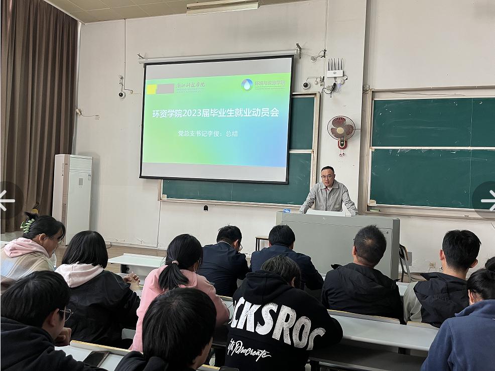 党总支书记李俊、副书记张进、招就处俞广良,各系负责人、班主任、教务办、学工办,以及2023届全体本科生、研究生参加了此次大会。大会由学工办程勇杰主持。