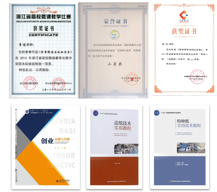 近5年,新获批省级教学改革项目4项、省级一流本科课程6门,课程思政示范课程2门,省级虚拟仿真实验教学项目3项,省高校思政名师工作室;校级课程思政课程11门,校级教学改革与研究立项项目,重大1项、重点2项和一般8项,发表教改论文9篇;主编高等教育规划教材2部,参编高等教育规划教材4部;获2016年浙江省高校微课教学大赛一等奖,2017年创业教育微慕课一等奖,2020年优秀教学案例省二等奖。